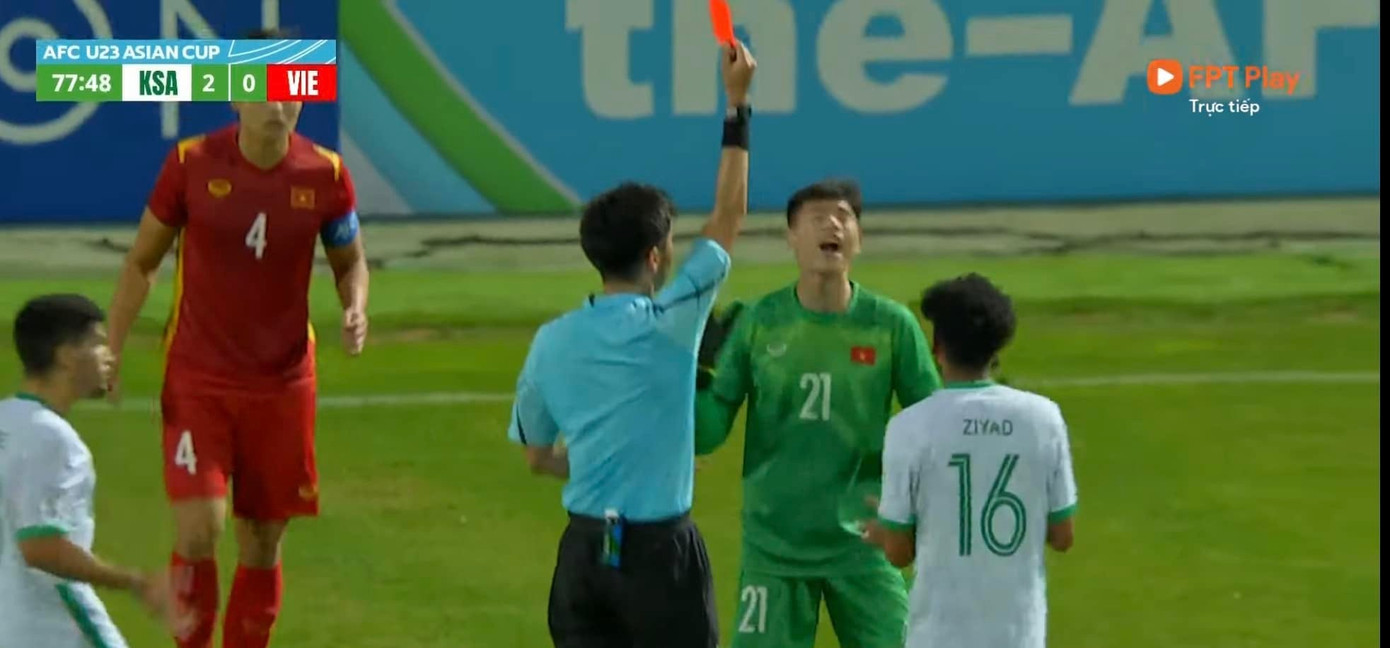 Văn Chuẩn bị đuổi khi U23 Việt Nam thua U23 Saudi Arabia 0-2 tại tứ kết U23 châu Á 2022