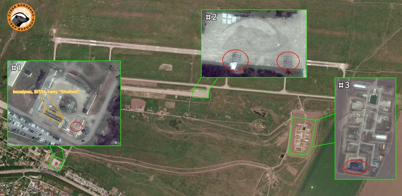 Quan sát hình ảnh vệ tinh được công bố, các chuyên gia phân tích lưu ý rằng, hoạt động của các xe chở hàng và xe phóng UAV xung quanh các tòa nhà bị ảnh hưởng. Ngoài ra, một cơ sở được sử dụng để lưu trữ và chuẩn bị đạn đã bị hư hại nghiêm trọng. Nhiều vụ cháy đã được ghi nhận ở nhiều khu vực khác nhau của sân bay.