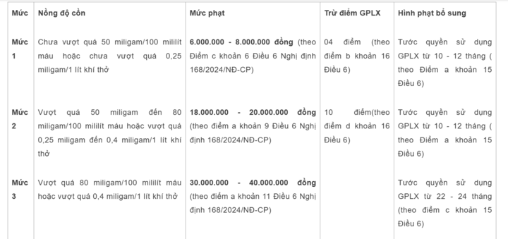 Ngoài phạt tiền, người vi phạm còn bị trừ điểm hoặc tước quyền sử dụng giấy phép lái xe. Đặc biệt, vi phạm ở mức 3 sẽ bị trừ hết điểm và tước GPLX gần 2 năm, ảnh hưởng nghiêm trọng đến quyền lái xe.