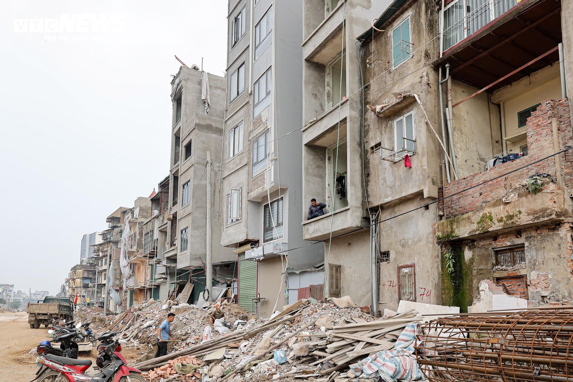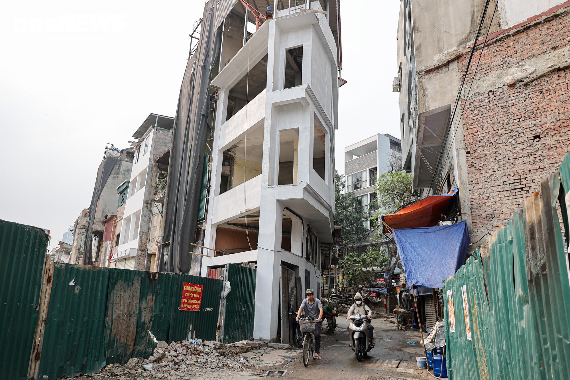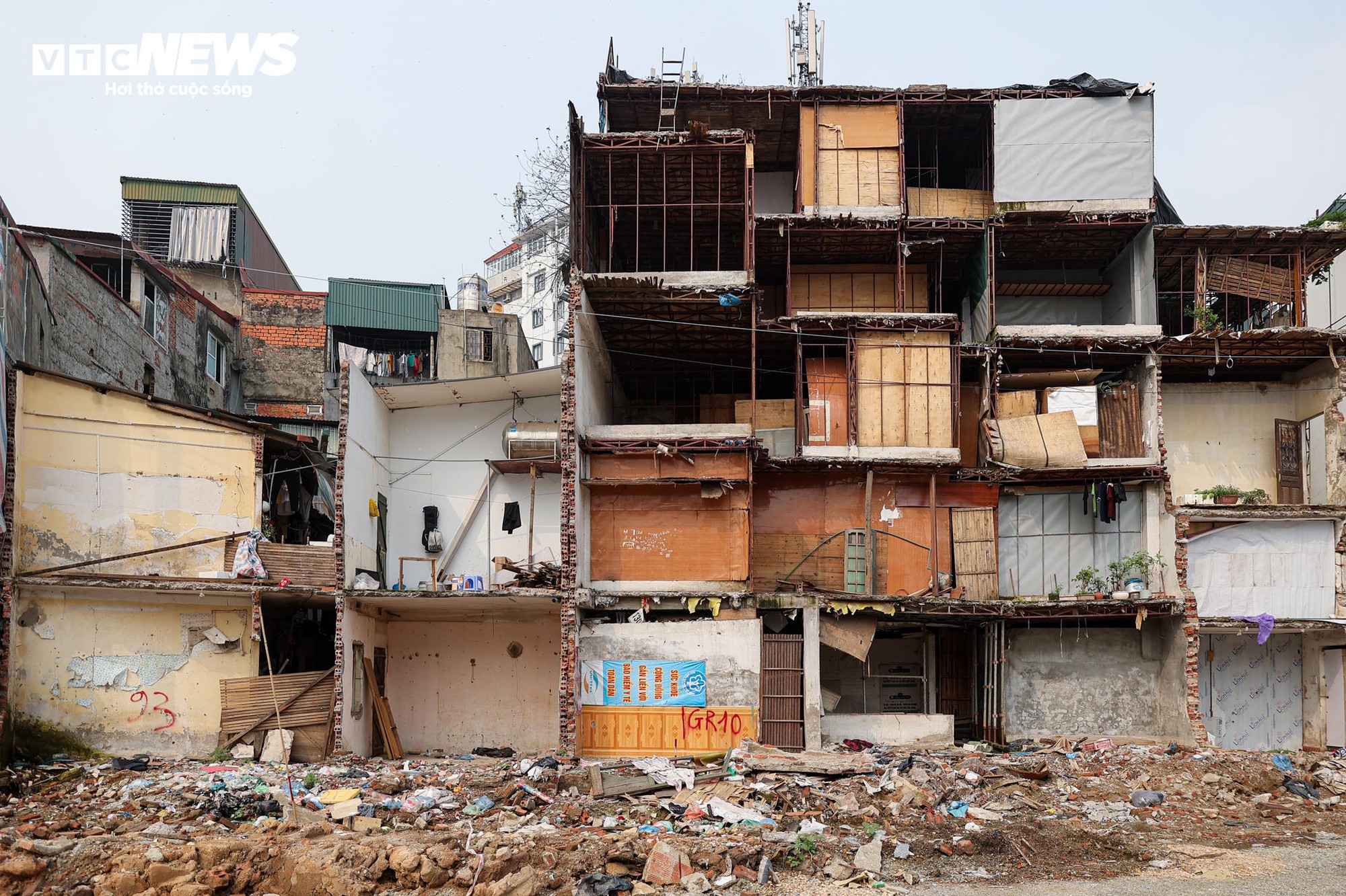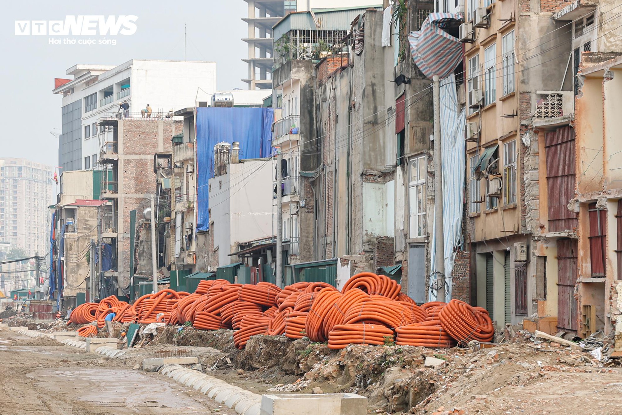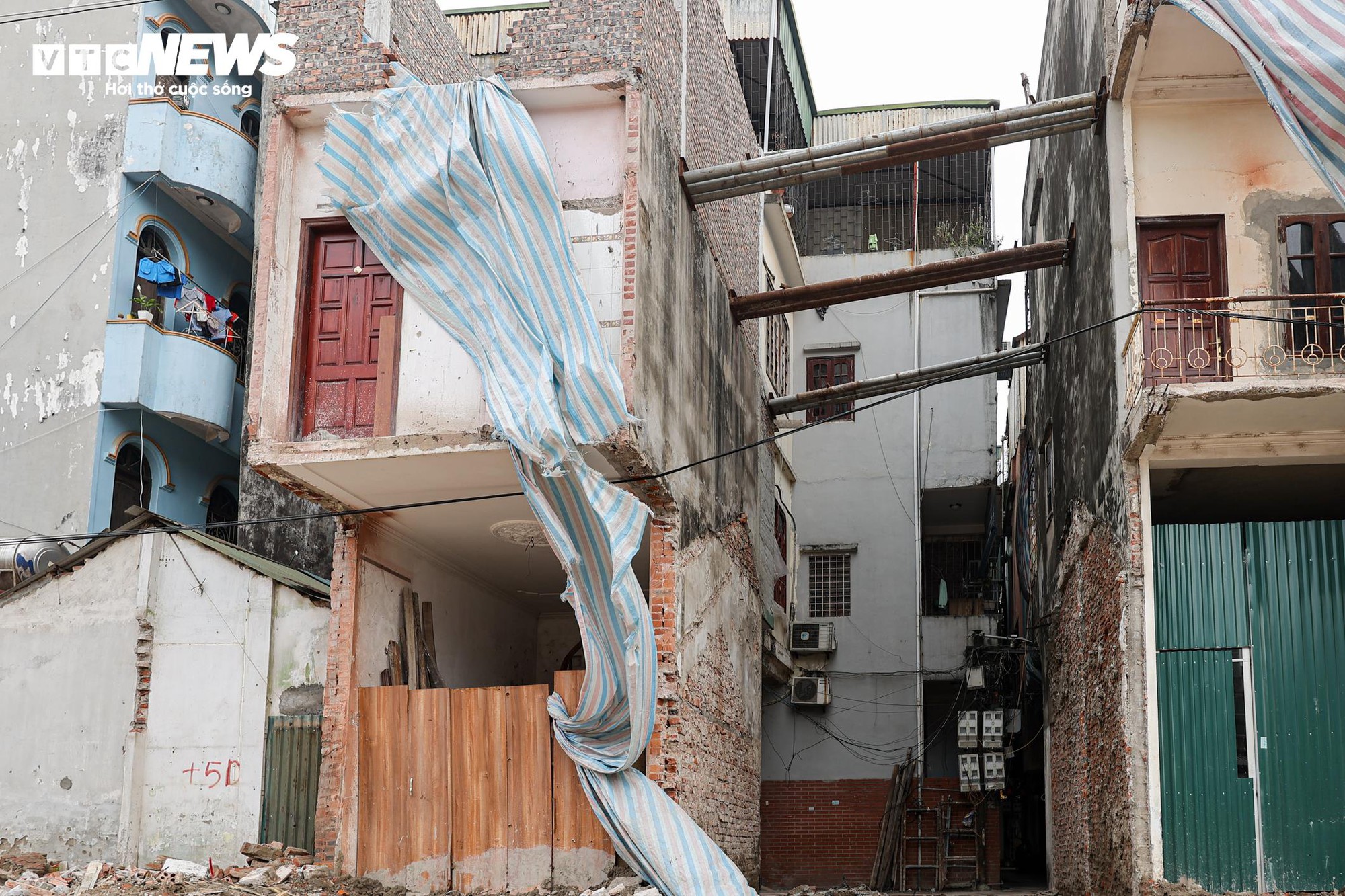 Sau giải tỏa, nhiều dãy nhà hai bên tuyến để lộ phần kết cấu phía sau.