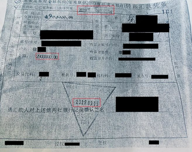 Theo sao kê tài khoản của người nhận tiền, trong vòng 3 ngày sau khi nhận 2,9 triệu NDT, toàn bộ số tiền đã được rút hoặc chuyển đi. Trong đó khoảng 761.600 NDT được dùng để trả lãi cho hai doanh nghiệp, 73.000 NDT thanh toán tại một đại lý ô tô ở Tây An, hơn 3.000 NDT dùng mua bảo hiểm, còn lại hơn 2 triệu NDT được rút tiền mặt với ghi chú “chi phí khác”.