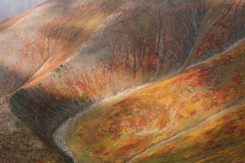 Tác phẩm “Bảng màu mùa thu” của Andrey Belavin, Khu bảo tồn Yugyd Va, Komi. Sườn núi Manaraga ở dãy Ural cận Bắc Cực tháng 9 được phủ sắc vàng cam rực rỡ, tạo nên bức tranh thiên nhiên sống động.