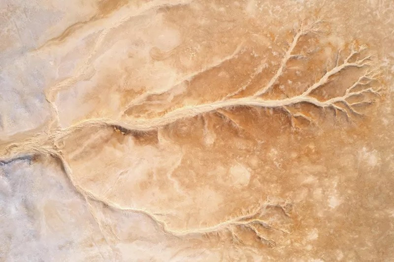 Tác phẩm “Hình học tự nhiên Baskunchak” của Dmitry Kupratsevich, Astrakhan. Bờ hồ muối Baskunchak xuất hiện những đường vân như mạch máu, tạo hoa văn kỳ lạ, gợi liên tưởng đến động mạch cổ xưa trong vỏ trái đất.
