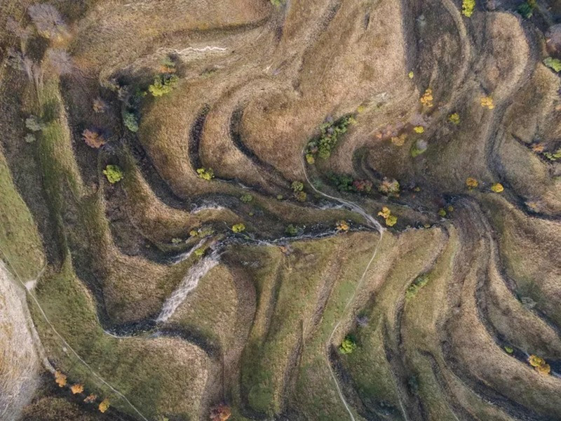 Tác phẩm “Ruộng bậc thang Chokh” của Artem Zubarev, làng Chokh, Dagestan. Vào mùa thu, các thửa ruộng bậc thang khoác màu vàng óng, mang đến góc nhìn mới lạ về cảnh quan nổi tiếng của vùng.