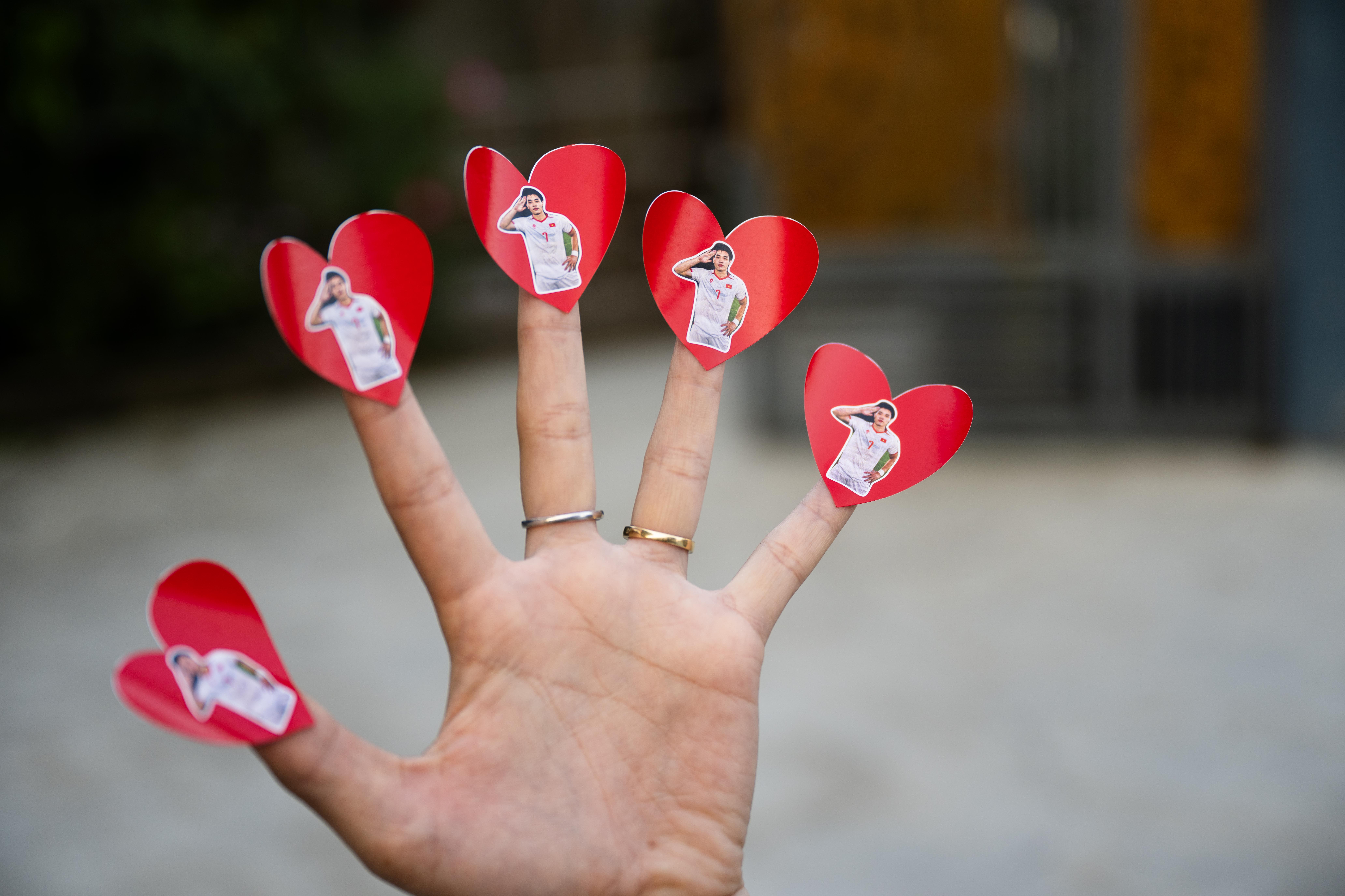 Thậm chí, có người còn chuẩn bị những miếng sticker nhỏ in hình Đình Bắc kèm biểu tượng trái tim để phát cho mọi người xung quanh. Không khí trong căn nhà bỗng rộn ràng tiếng nói cười, câu chuyện xoay quanh bóng đá, trận đấu sắp tới.