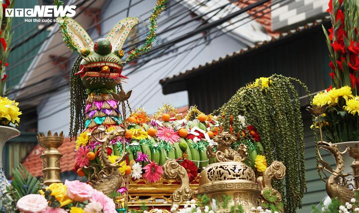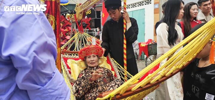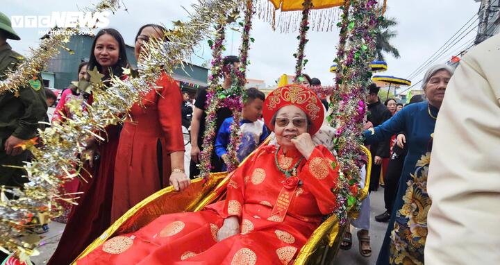 Với những đoàn rước cách xa miếu Tiên Công từ 4-5km, các "cụ Thượng" sẽ được con cháu mời lên xe đẩy được trang trí và có lọng che.