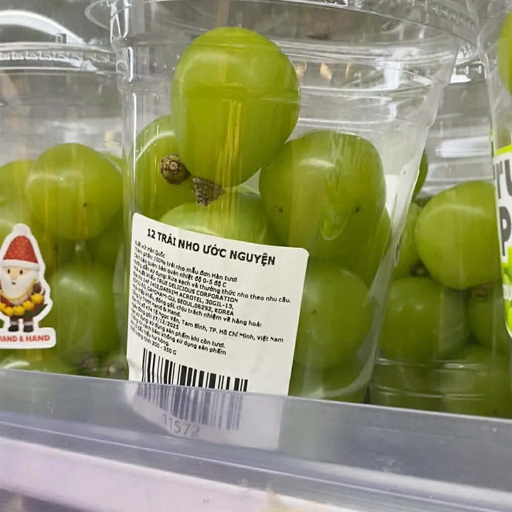 Sức hút của trào lưu này còn thể hiện rõ ở thị trường bán lẻ. Sát thềm Tết Dương lịch, nhiều siêu thị và cửa hàng tiện lợi bày bán những khay nho được đóng gói lạ mắt, mỗi khay chỉ vỏn vẹn 12 quả, sắp xếp gọn gàng, bọc màng cẩn thận hoặc đóng hộp nhỏ xinh. Không ít người tiêu dùng tỏ ra bất ngờ, thậm chí bật cười khi bắt gặp những “phiên bản nho giao thừa” này.