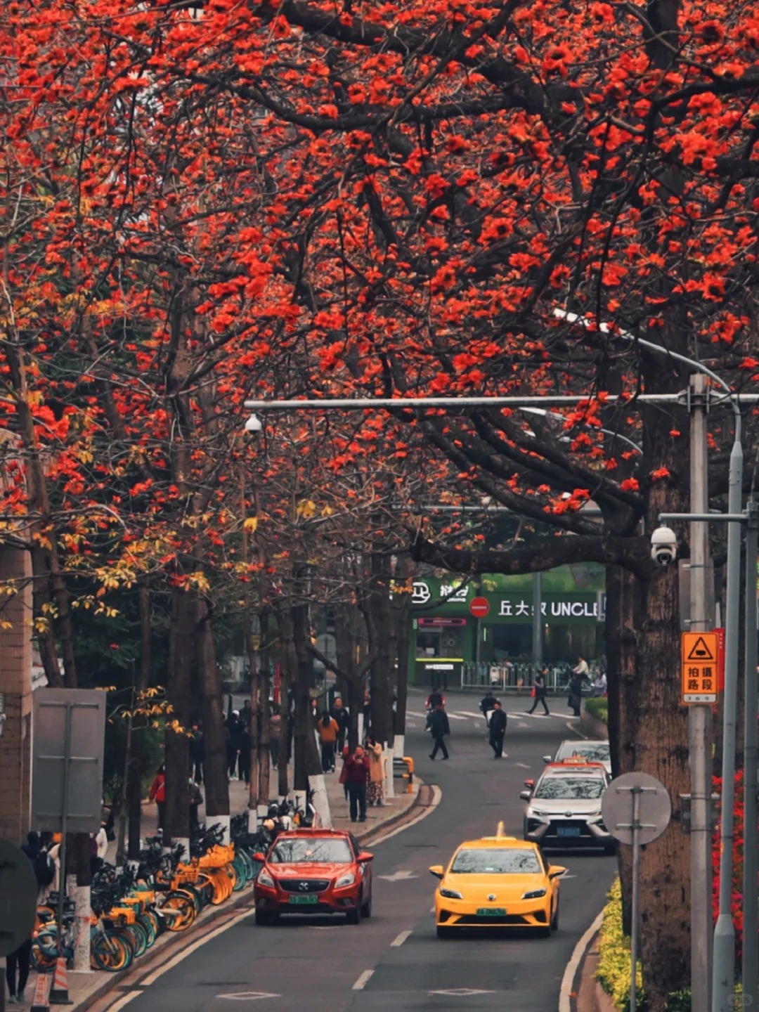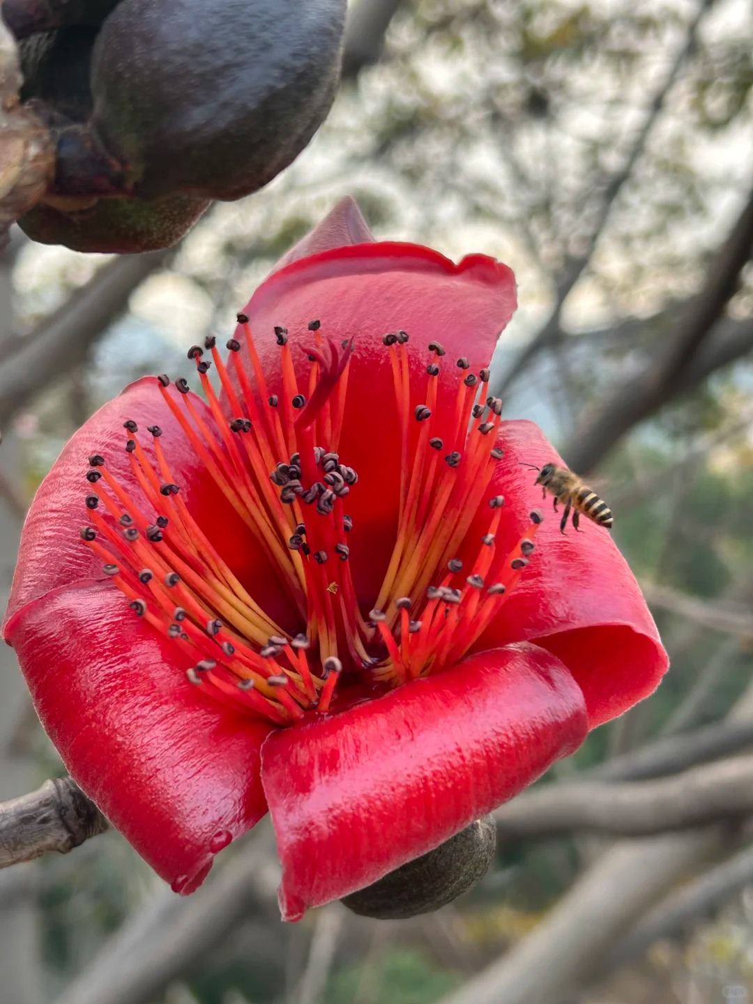 Tháng 3 này, nếu bạn có dịp lướt mạng xã hội hay dạo bước ở Quảng Châu, bạn sẽ choáng ngợp trước những con đường rợp trời sắc đỏ. Người dân ở đây không kiêng kỵ hoa gạo, mà họ sống cùng nó. Tại Nhà kỷ niệm Tôn Trung Sơn, có một cây mộc miên cổ thụ đã hơn 350 tuổi. Khi mùa xuân đến, vòm cây khổng lồ như hàng ngàn chiếc đèn lồng đỏ rực che rợp cả một góc mái ngói lưu ly in đậm dấu ấn thời Dân quốc.