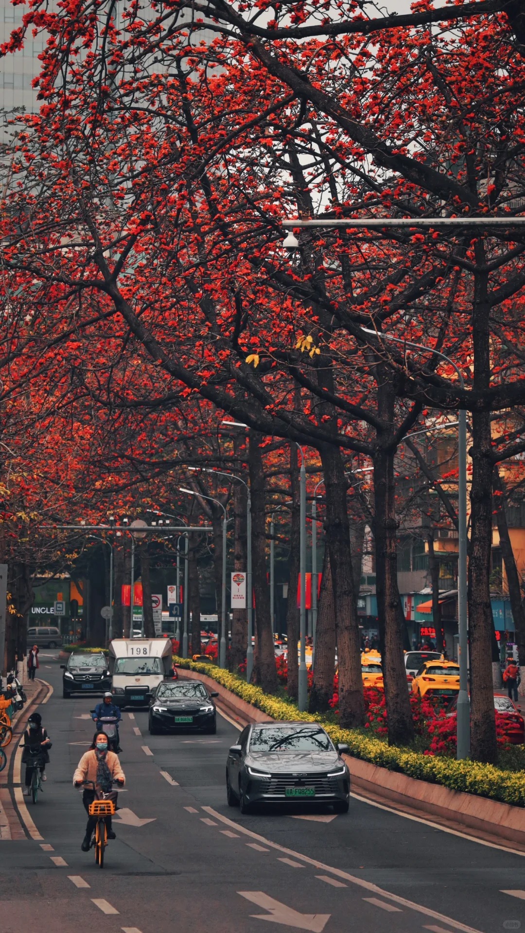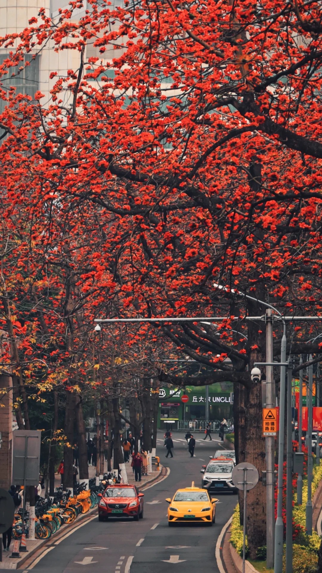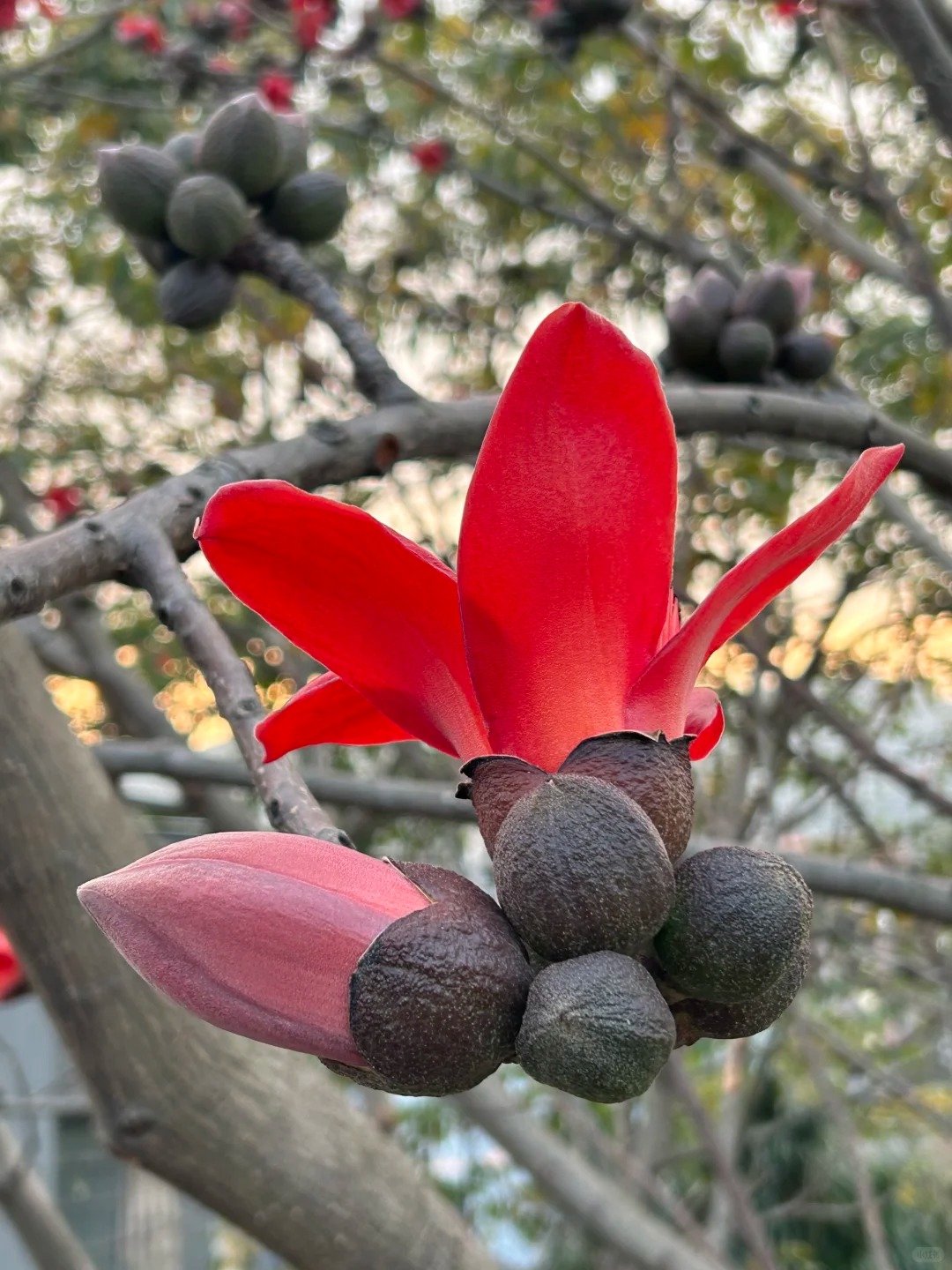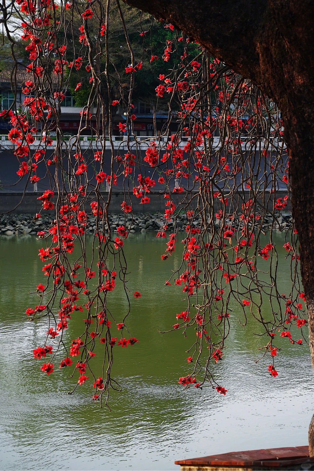 Nhìn lên cây là vẻ đẹp kiêu hùng, còn nhìn xuống gốc cây là một bức tranh đời sống vô cùng dung dị. Bạn sẽ thấy những cô gái mặc Hán phục kiễng chân bắt lấy một bông hoa vừa lìa cành như đang đón lấy "bức thạch sùng thêu trên không", và cả những bà cụ người Quảng Đông nhanh tay nhặt những bông hoa đỏ còn tươi rói nhét đầy vào túi vải.