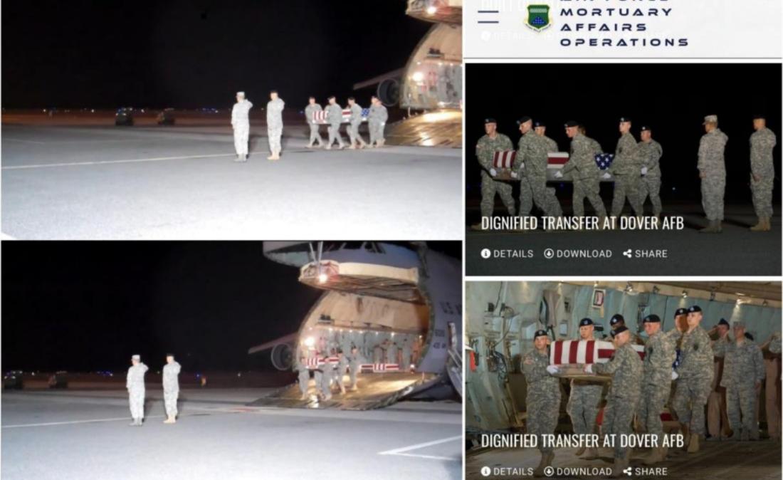 Các hình ảnh tương tự về buổi lễ tại Căn cứ Không quân Dover đã được đăng tải trên cùng trang web và ghi chú nguồn là Roland Balik thay mặt cho Không quân Mỹ.
