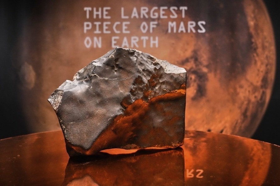 Một thiên thạch sao Hỏa, nặng 24,67 kg, được cho là mảnh sao Hỏa lớn nhất trên Trái Đất, tại Sotheby’s, New York, ngày 9/7 và nó đã được bán với giá hơn 5 triệu USD.