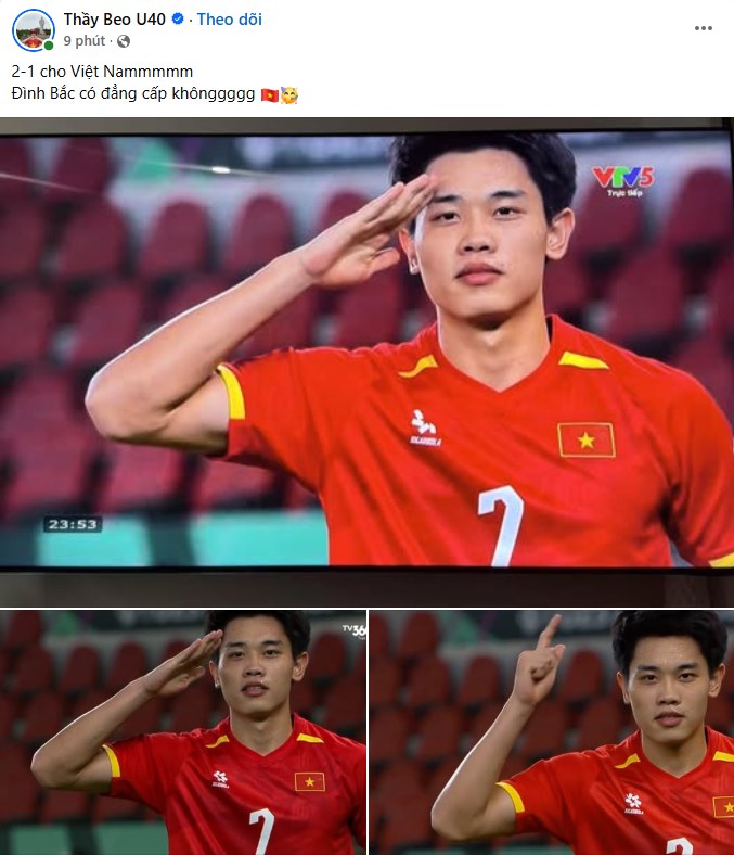 Bước sang hiệp 2, cái tên Đình Bắc tiếp tục trở thành tâm điểm của mọi sự chú ý. Sau cú sút chệch cột dọc đầy tiếc nuối ở phút 54, tiền đạo này đã khiến hàng triệu người hâm mộ Việt Nam sung sướng tột độ. Phút 62, từ quả tạt bóng của Minh Phúc, Đình Bắc thực hiện pha đánh đầu ngược cực kỳ đẳng cấp, nâng tỷ số lên 2-1 cho U23 Việt Nam. Bàn thắng không chỉ thể hiện kỹ năng dứt điểm đa dạng mà còn cho thấy khả năng chọn vị trí nhạy bén của ngôi sao trẻ này.