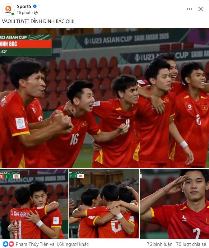Phút 32, HLV trưởng quyết định tung Đình Bắc vào sân thay cho Viktor Lê. Đây chính là "quân bài tẩy" làm thay đổi hoàn toàn sức tấn công của U23 Việt Nam. Chỉ mất đúng 8 phút có mặt trên sân, Đình Bắc đã chứng minh giá trị bằng pha tì đè dũng mãnh, kiến tạo thuận lợi để Lê Phát dứt điểm mở tỷ số 1-0, khiến cầu trường vỡ òa cảm xúc. Dù U23 UAE nhanh chóng có bàn gỡ hòa ở phút 42 do công của Junior, nhưng dấu ấn mà số 15 của U23 Việt Nam để lại trong hiệp 1 là vô cùng đậm nét.