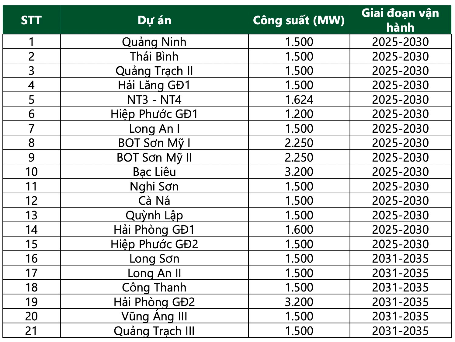 Danh mục các nhà máy nhiệt điện LNG trong QHĐ VIII điều chỉnh