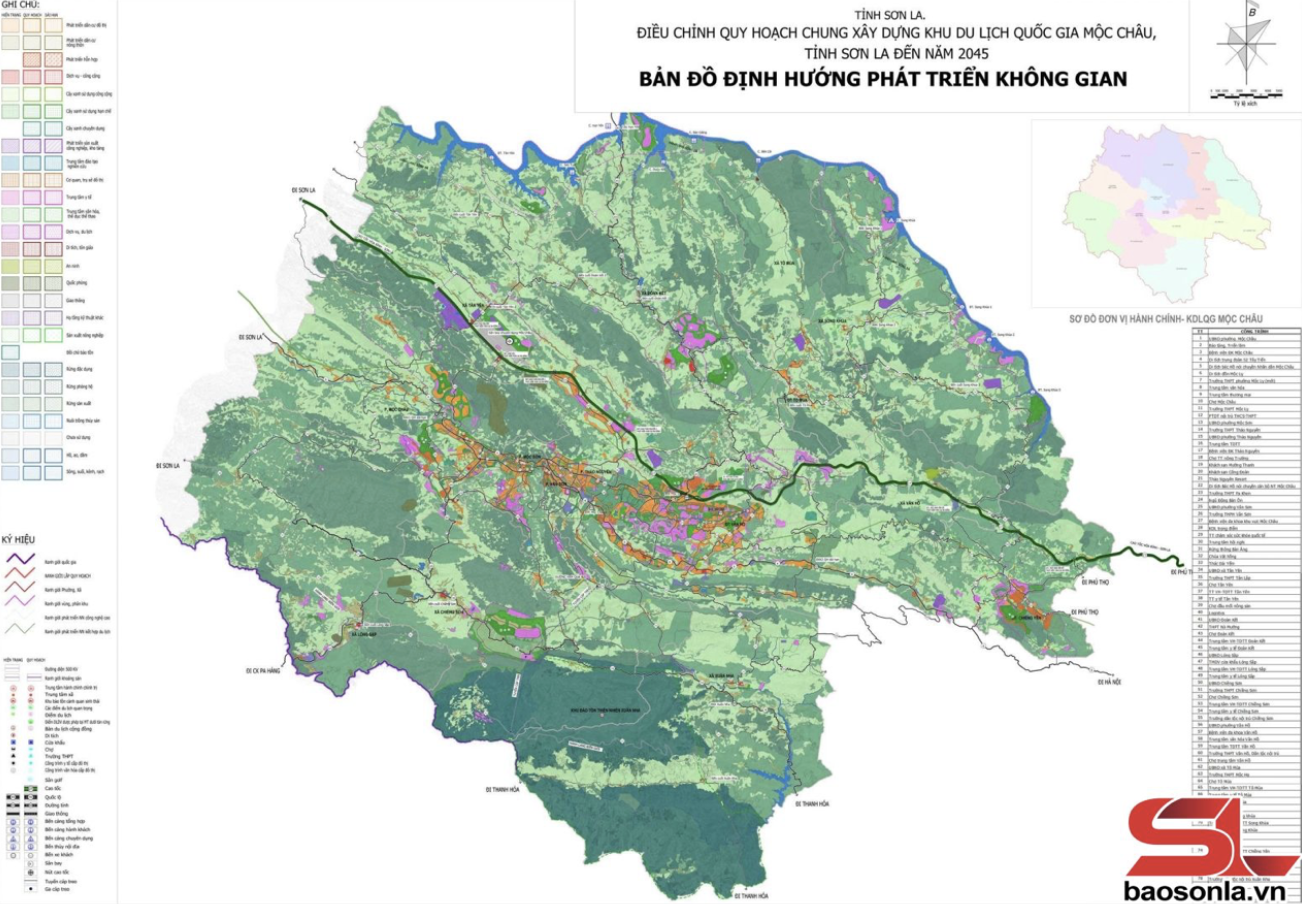 Bản đồ định hướng phát triển không gian Khu du lịch Quốc gia Mộc Châu, tỉnh Sơn La. Ảnh: Báo Sơn La