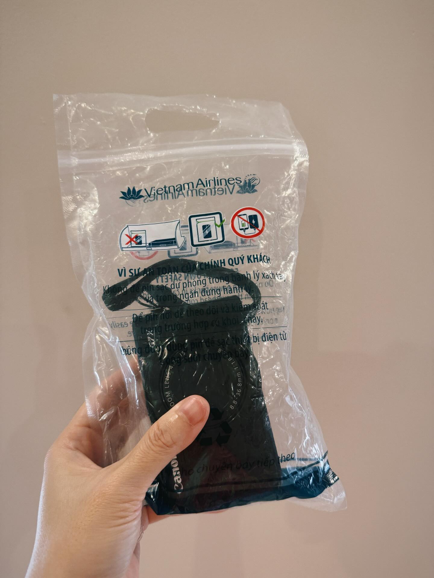 Vietnam Airlines phát 1 chiếc túi nhỏ để giữ an toàn, từ đó cô gái lúc nào cũng mang khư khư theo bên người