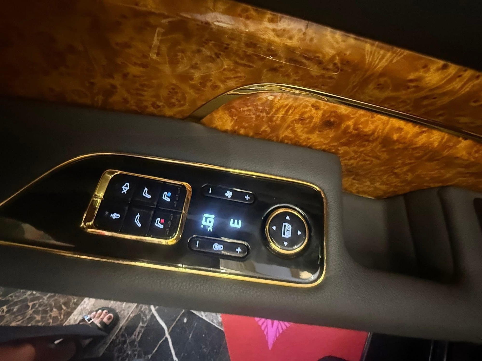 Ngoài ra, hình ảnh còn cho thấy bên trong bổ sung thêm một vách ngăn cố định giữa hai hàng ghế, được ốp gỗ và có tấm kính chắn mang đậm chất thương gia. Hai ghế sau cũng được thay mới khi có thêm bệ đỡ bắp chân. Dàn nút bấm trên cửa cho thấy những tiện ích gồm chỉnh điện đa hướng có thể ngả sâu thông qua một nút bấm, sưởi ấm và làm mát ghế. Hệ thống điều hòa cũng được tùy chỉnh riêng biệt, nhiều khả năng là loại 4 vùng. Một số điểm khác biệt gồm các chi tiết ốp gỗ sáng màu, logo cánh chim ở vô lăng, các dải mạ chrome đều có màu vàng liên tưởng tới chi tiết mạ vàng.