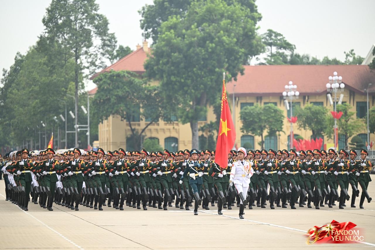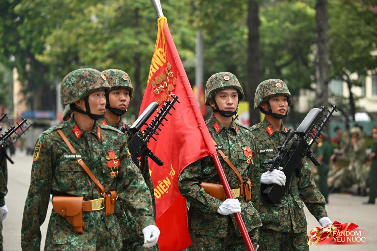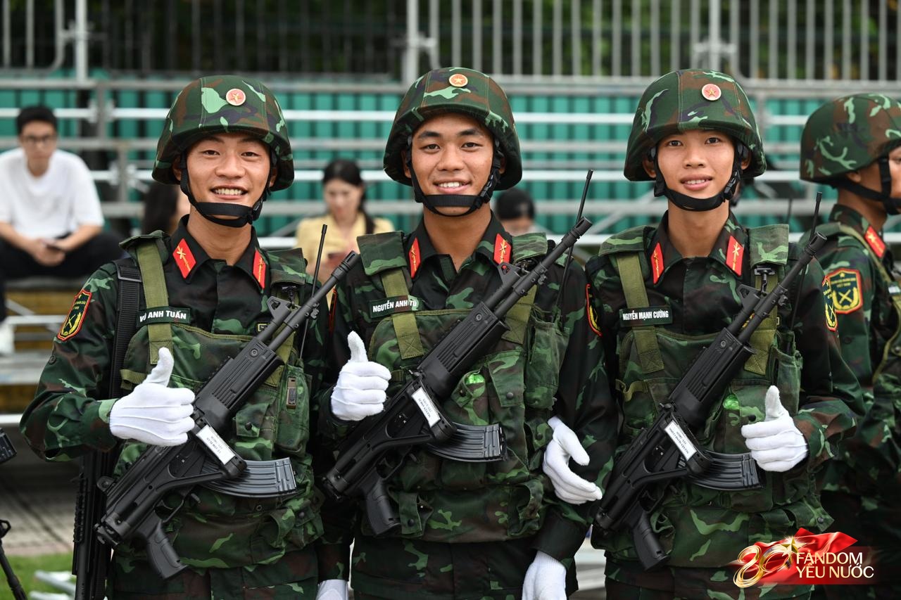 Dù mồ hôi ướt đẫm lưng áo giữa thời tiết oi ả của Hà Nội nhưng những người lính vẫn giữ thần thái nghiêm nghị, ánh mắt kiên định và tác phong chuẩn mực. Tất cả đều phối hợp nhịp nhàng, tạo nên khung cảnh hùng tráng, giàu cảm xúc trước thềm ngày lễ trọng đại của dân tộc.