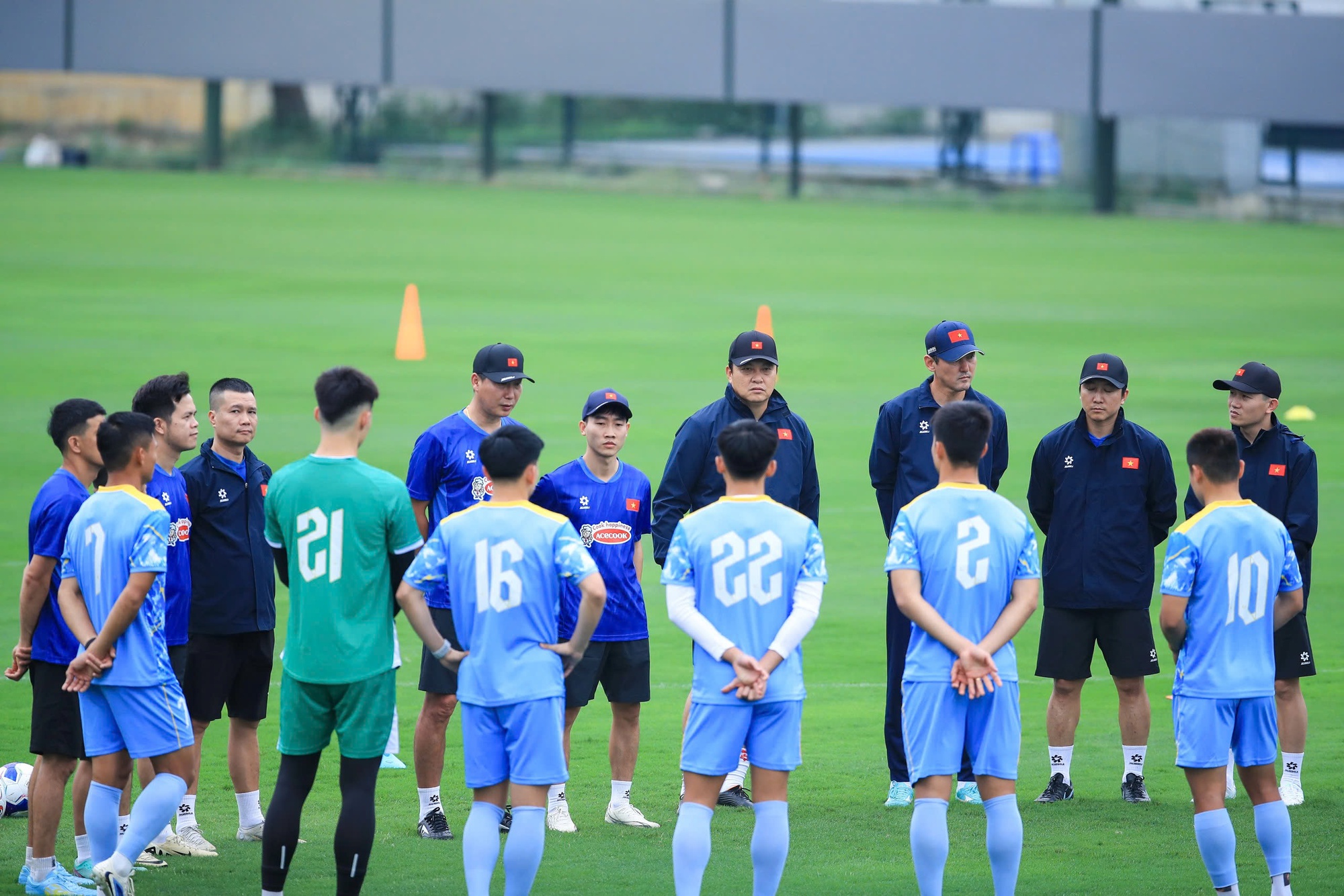 Do nhiều cầu thủ vẫn đang thi đấu tại vòng tứ kết Cúp quốc gia và trận đá bù vòng 13 V.League 2025/26, buổi tập này mới chỉ có sự góp mặt của 10 cầu thủ