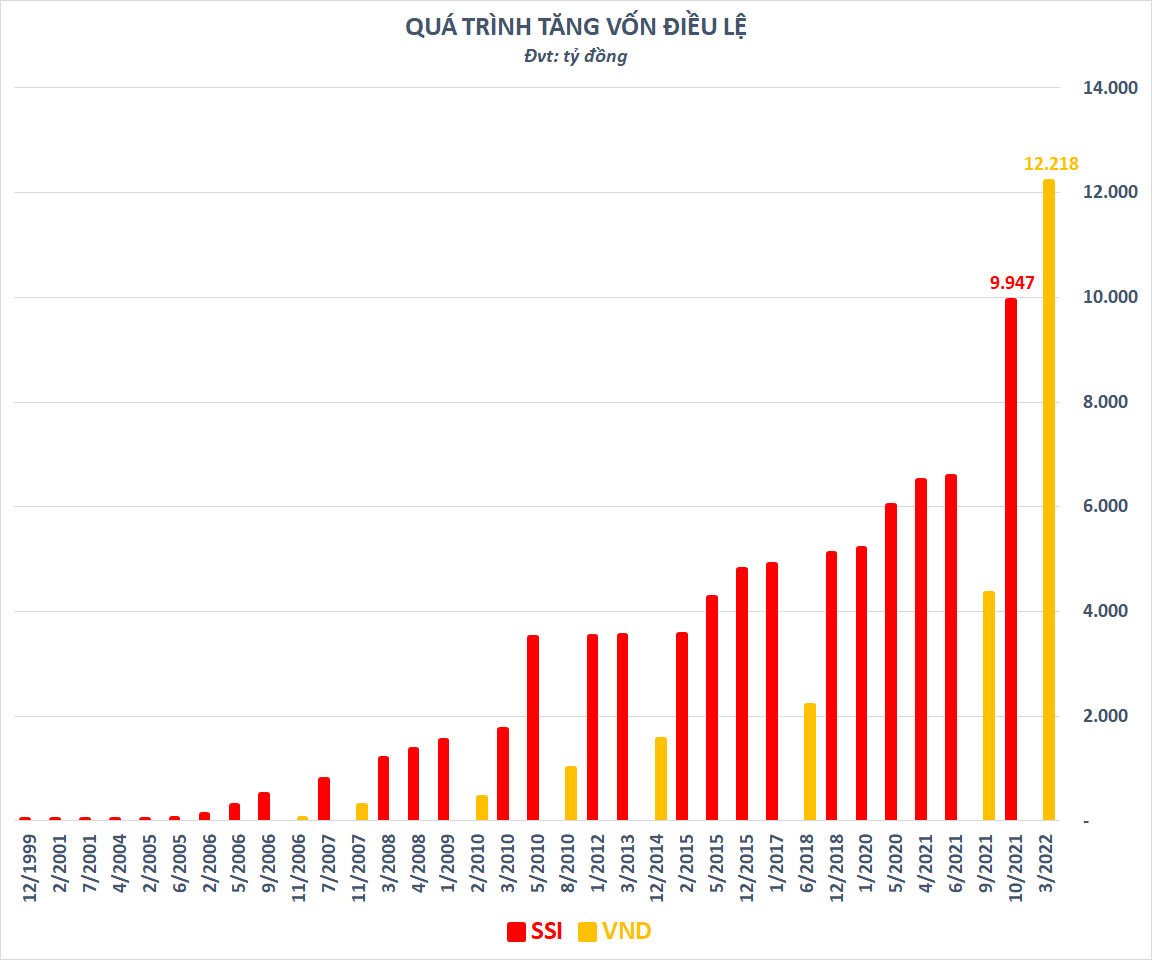 VNDirect và SSI đều đẩy nhanh tốc độ tăng vốn điều lệ