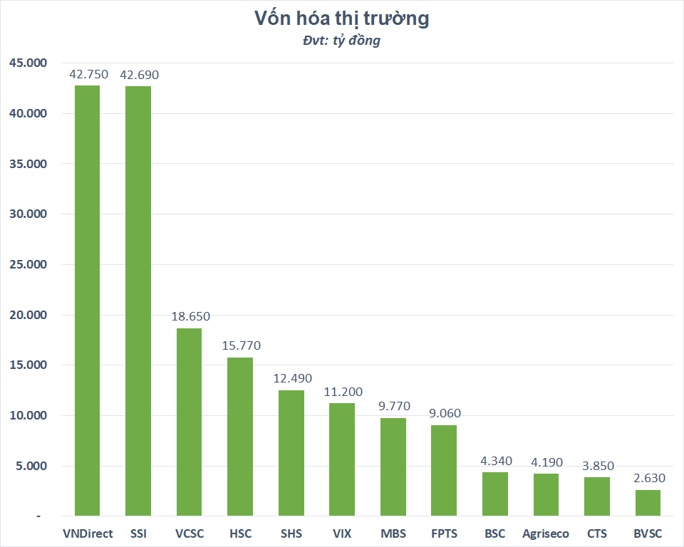 Với mức thị giá hiện tại, vốn hóa của VNDirect đạt hơn 42.750 tỷ đồng, vừa đủ vượt qua SSI để chính thức trở thành công ty chứng khoán (CTCK) vốn hóa lớn nhất Việt Nam. Kết quả này có được một phần do cổ phiếu SSI bị cuốn vào vòng xoáy bán tháo trên thị trường và giảm gần 2,5% xuống 43.000 đồng/cổ phiếu tương ứng vốn hóa gần 42.690 tỷ đồng.