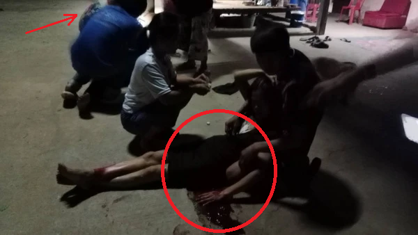 4 nạn nhân bị thương nặng nằm gục ở sân nhà. Ảnh: Mgronline