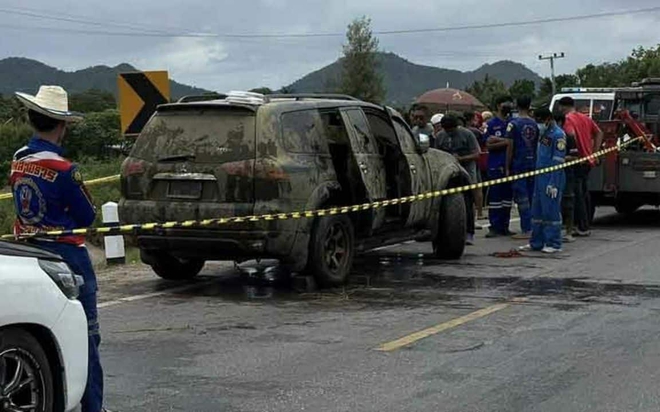 Khi tới nơi, anh Ong-arj vô cùng đau buồn khi nhận dạng thi thể của vợ. Những người có mặt ở hiện trường cũng không khỏi xót xa trước sự việc thương tâm này.