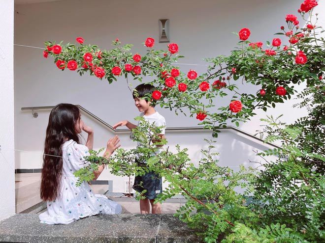 Đợi bố về là ba bố con tưới vườn, còn mình nấu cơm. Khu vườn giúp các bé biết thêm tên nhiều loại cây, loại hoa và biết kiên nhẫn chờ đợi từ lúc cây chỉ là rễ, rồi lên mầm, trổ nụ rồi mới nở hoa", chị Dung hào hứng kể.