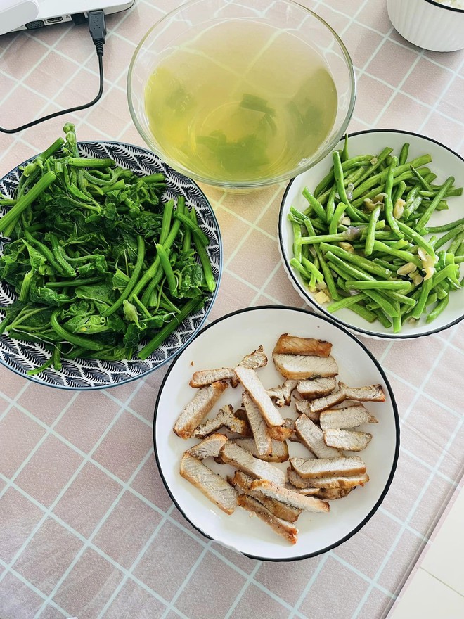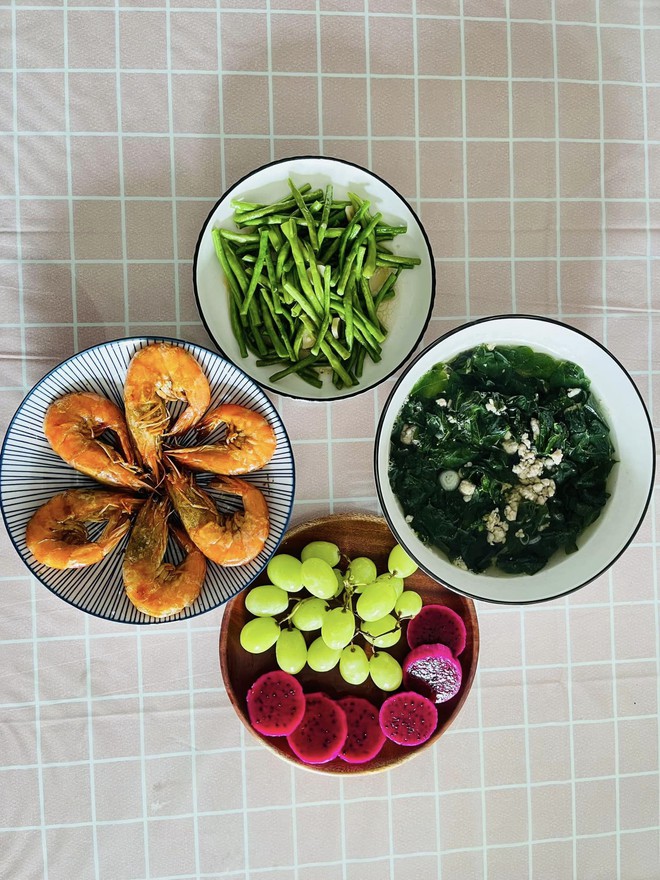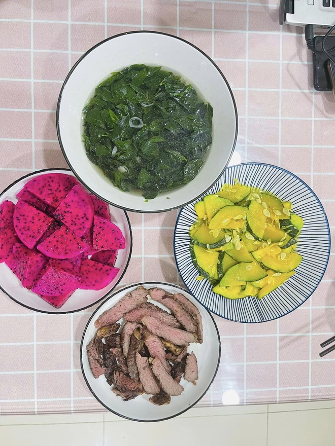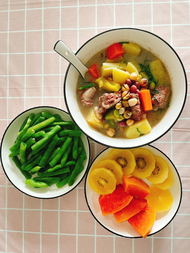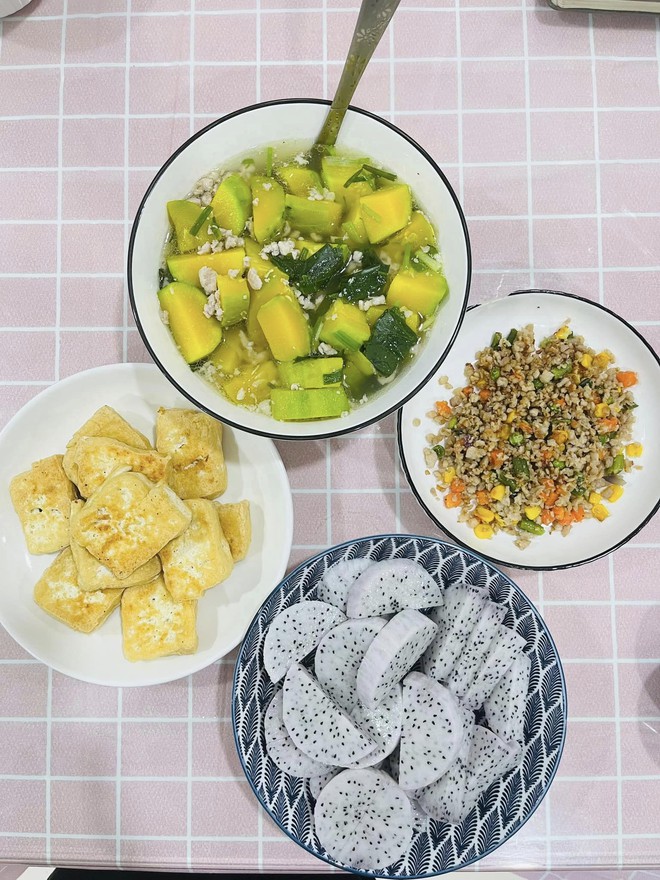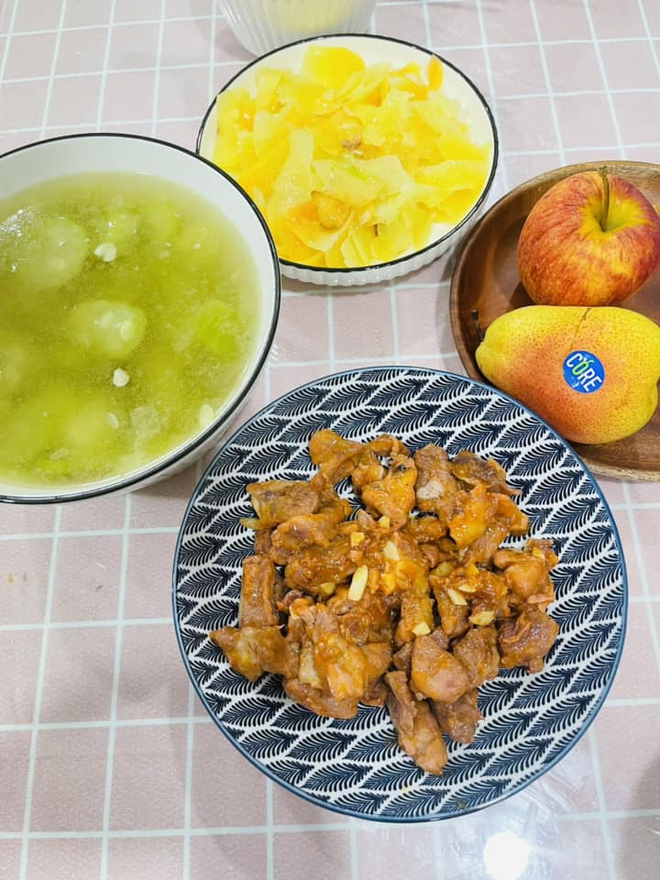 Có thể thấy những bữa cơm cữ ông xã chị Oanh nấu cho vợ đều có đầy đủ rau, món mặn, canh và hoa quả tráng miệng theo mùa. Anh cũng giúp vợ kiêng những món gây ra tình trạng mất sữa hay ảnh hưởng xấu đến sức khoẻ. Với anh, món ăn ngon cần phải trình bày đẹp mắt, hấp dẫn nữa.
