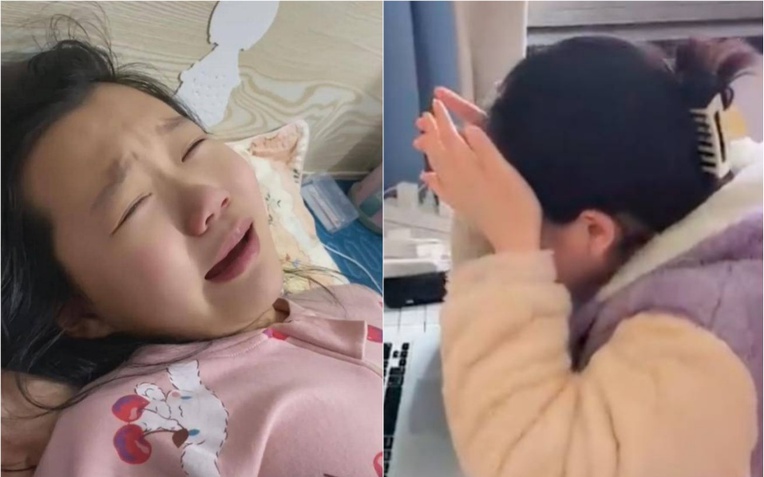 Cô bé khóc vì thương bố mẹ