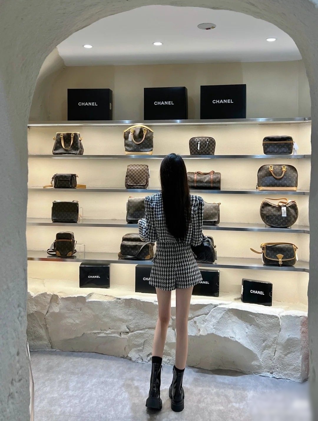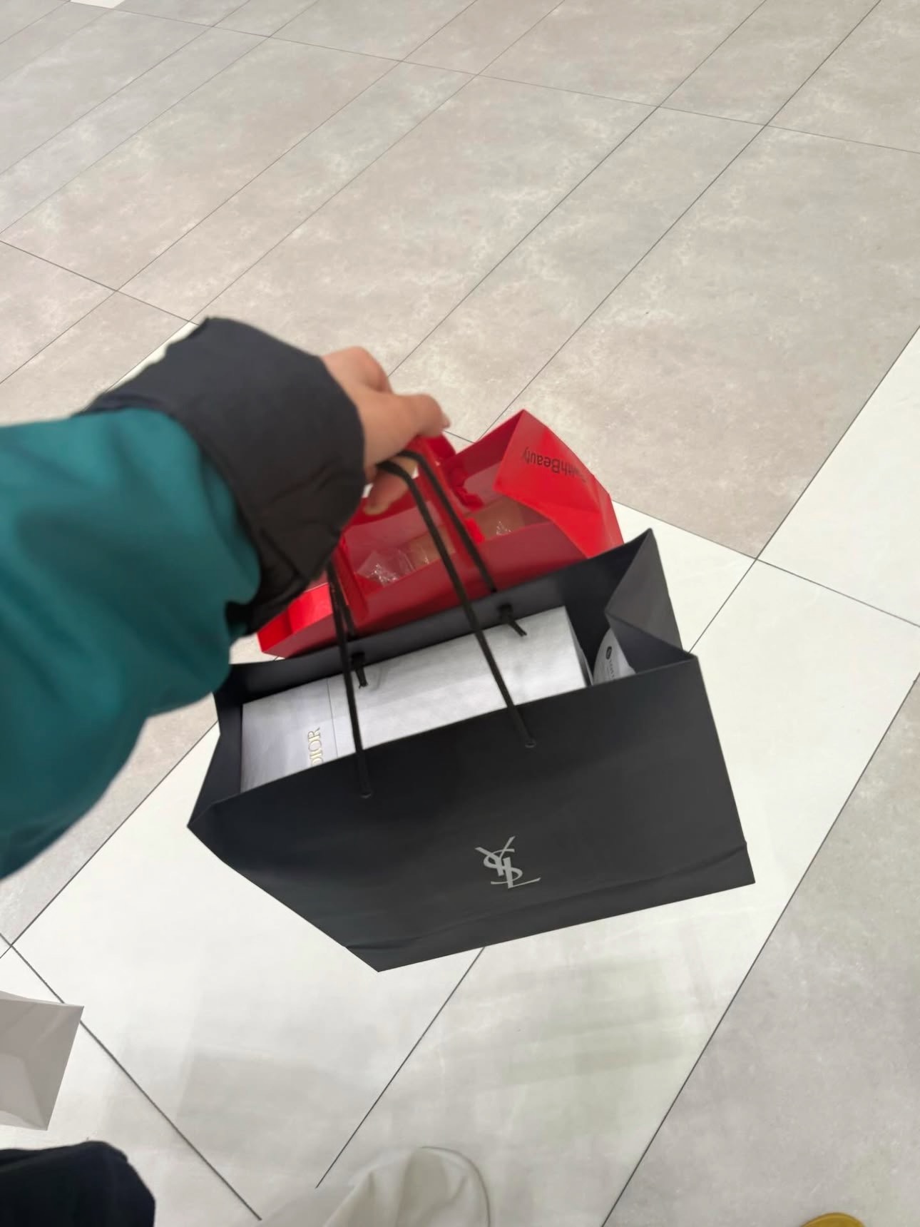 Nhân vật chính trong ảnh mặc trang phục giản dị: áo khoác đồng phục học sinh cấp 3, quần jeans, giày thể thao. Tuy nhiên, chi tiết khiến bức ảnh nhanh chóng lan truyền lại nằm ở những chiếc túi mua sắm trên tay cô gái. Theo hình ảnh được đăng tải, cô gái đã mua hàng tại các thương hiệu cao cấp như Yves Saint Laurent (YSL), Dior và Shiseido. Đây đều là những nhãn hàng thuộc phân khúc cao cấp.