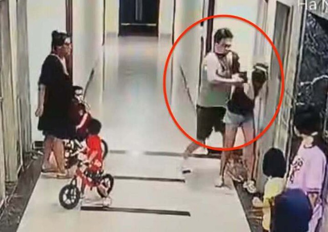 Hình ảnh Thành hành hung người phụ nữ tại sảnh chung cư (Ảnh cắt từ clip do camera ghi lại. Nguồn: VTC News).