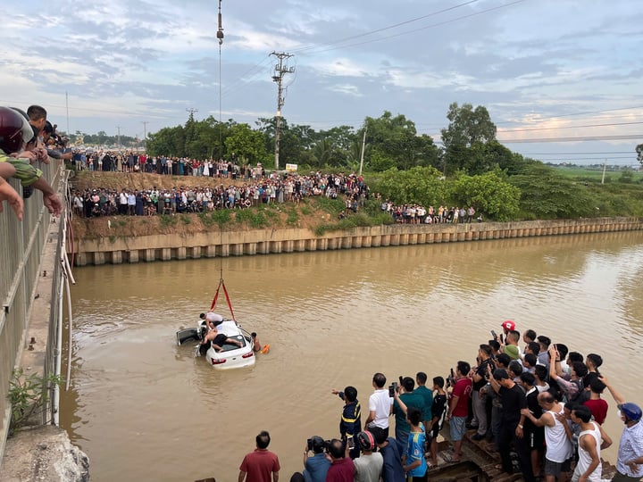 Chưa dừng lại, ô tô này tông vào xe máy do anh Đậu Đình C. (32 tuổi, trú xã Đại Huệ, tỉnh Nghệ An) chở vợ là chị Nguyễn Thị B. (28 tuổi), con trai Đ.Đ.P. (4 tuổi) và cháu Đ.Đ.Q. (9 tuổi) di chuyển theo chiều ngược lại. Sau đó, chiếc xe đâm gãy lan can cầu Thiên Đường, rơi xuống sông Đào.