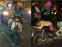 Tiếp tục theo dõi những người “diễn kịch” ở TPHCM để ăn xin, khoảng 16 giờ ngày 26-3, trên đường Hoàng Văn Thụ (quận Tân Bình - TPHCM), chúng tôi thấy một phụ nữ khoảng 35 tuổi với gương mặt uể oải đẩy xe máy, trên yên xe là một bé gái khoảng 4 tuổi nằm sõng soài.Cứ đến chỗ đông người, người phụ nữ này dừng lại, nài nỉ: “Em đi đường thì xe hết xăng, anh/chị có tiền cho em vài chục để đổ xăng, con em nó bệnh trong khi nhà ở tận Bến xe Chợ Lớn!”. Với chiêu này, không ít người đã rút tiền ra cho, người ít thì 10.000 đồng, nhiều thì 50.000 đồng.