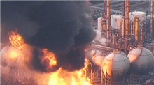 Một nhà máy điện Ishihara bốc cháy do trận động đất dữ dội. Ảnh: AFP
