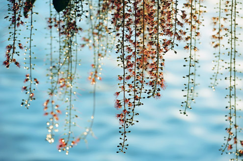 Ngay cả khi hoa chưa nở hết, lộc vừng đã buông mành rủ xuống tạo một vẻ đẹp cuốn hút.