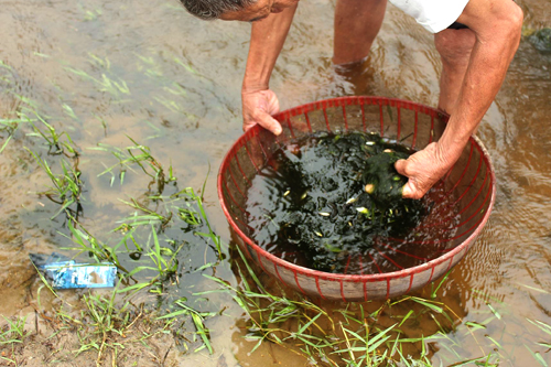 Một người dân đánh bắt cá bên con suối nhỏ, cạnh con đường tỉnh lộ 3.