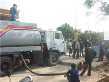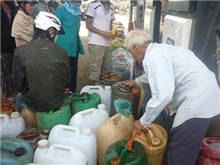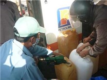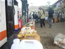 Như bắt được vàng, người dân đổ ra giữ can của mình để chờ được đổ dầu.