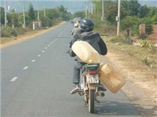 Người đàn ông này nhất quyết không chịu rời khỏi 2 chiếc can đựng dầu của mình vì sợ người khác đẩy can ra phía sau để chiếm chỗ.
