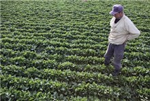 Một nông dân ở ngoại ô thành phố Fukushima, tỉnh Fukushima, Nhật Bản thăm ruộng rau vào ngày 5/4. Ảnh:AP.