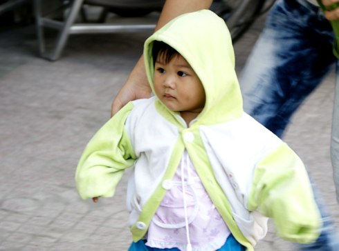 Cái se lạnh Sài Gòn chưa đủ để người lớn phải mặc áo ấm, nhưng nhiều em bé phải choàng kín người phòng ngừa cảm lạnh.