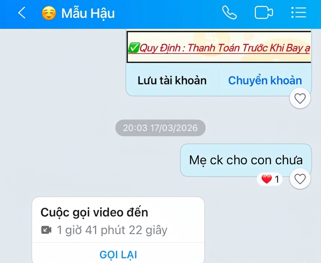 Trong khi đó, ở phía “Mẫu hậu”, các cuộc gọi xuất hiện dày đặc trong cùng một buổi tối, cách nhau chỉ vài chục phút. Thời lượng mỗi lần gọi cũng khá dài, khi thì 19 phút, 38 phút, thậm chí hơn cả tiếng đồng hồ, xen giữa còn là tin nhắn chuyển khoản, đủ thứ chuyện lớn nhỏ. Nhìn vào là thấy ngay một kiểu quan tâm rất quen thuộc của mẹ khi quan tâm từ bữa ăn, giấc ngủ đến từng chi tiết nhỏ trong cuộc sống.