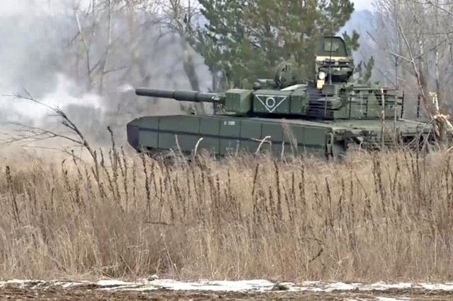 Bất chấp hỏa lực dữ dội, chiếc xe vẫn di chuyển được và tiếp tục thực hiện nhiệm vụ của mình, cho thấy sức sống cực kỳ đáng nể của chiến xa Nga.