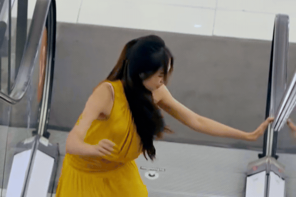 Cụ thể, trong cảnh Dũng và Trang đi trung tâm thương mại, một tình huống rất bình thường lại bị đẩy thành tai nạn một cách khó hiểu. Khi bước lên thang cuốn, Trang đi nhầm vào chiều ngược - thang đang đi xuống nhưng cô lại cố bước lên. Thay vì xử lý đơn giản như đứng yên để thang đưa xuống, nhân vật lại hoảng loạn, liên tục bước lên trong trạng thái chới với, loay hoay và kêu cứu.