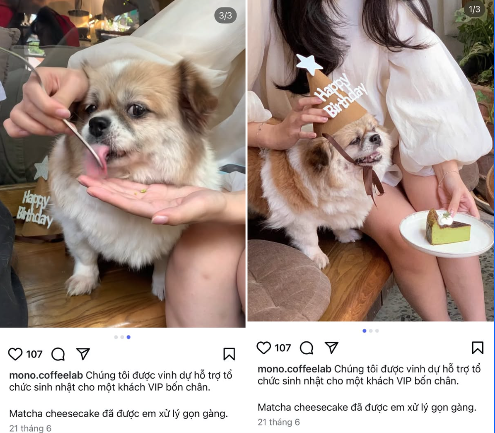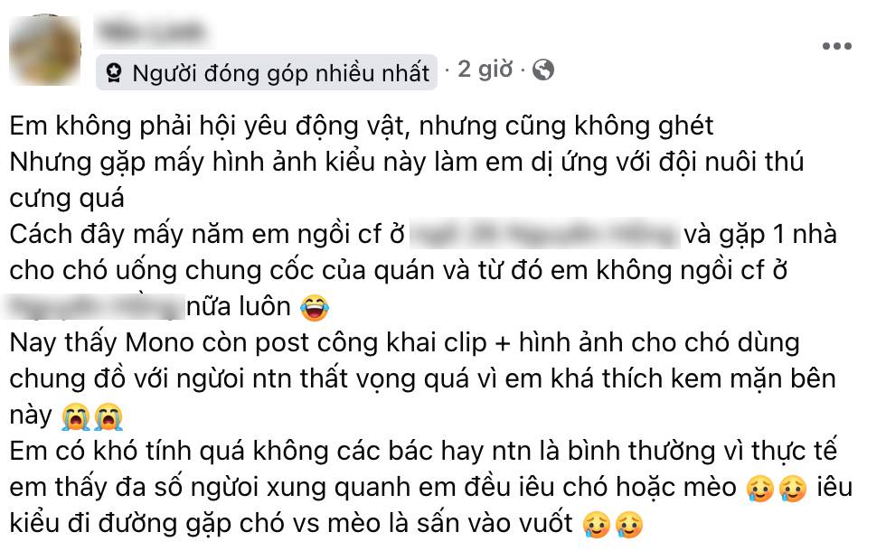 Trong đó, bài đăng trực tiếp nhắc đến hình ảnh được đăng tải bởi một thương hiệu cà phê khá nổi tiếng tại Hà Nội, với hình ảnh một vị khách đang dùng dĩa (loại sử dụng cho khách) để cho một chú cún ăn.