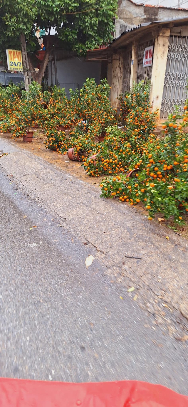 Nhiều chậu quất đổ gục, rụng quả không thể tiếp tục bày bán gây thiệt hại cho các tiểu thương. Ảnh: MXH