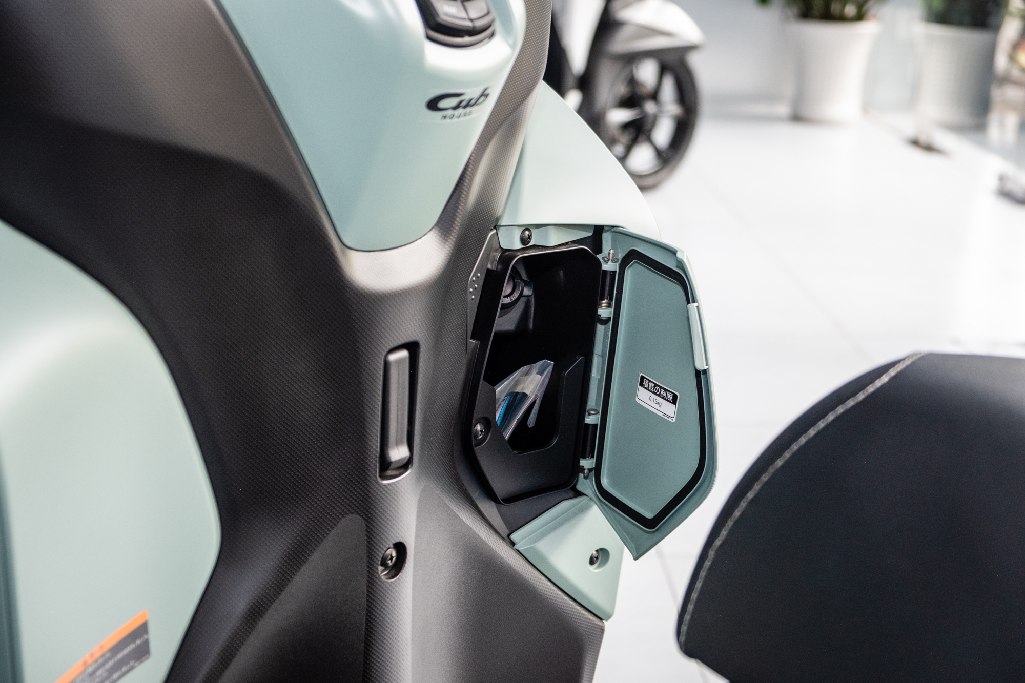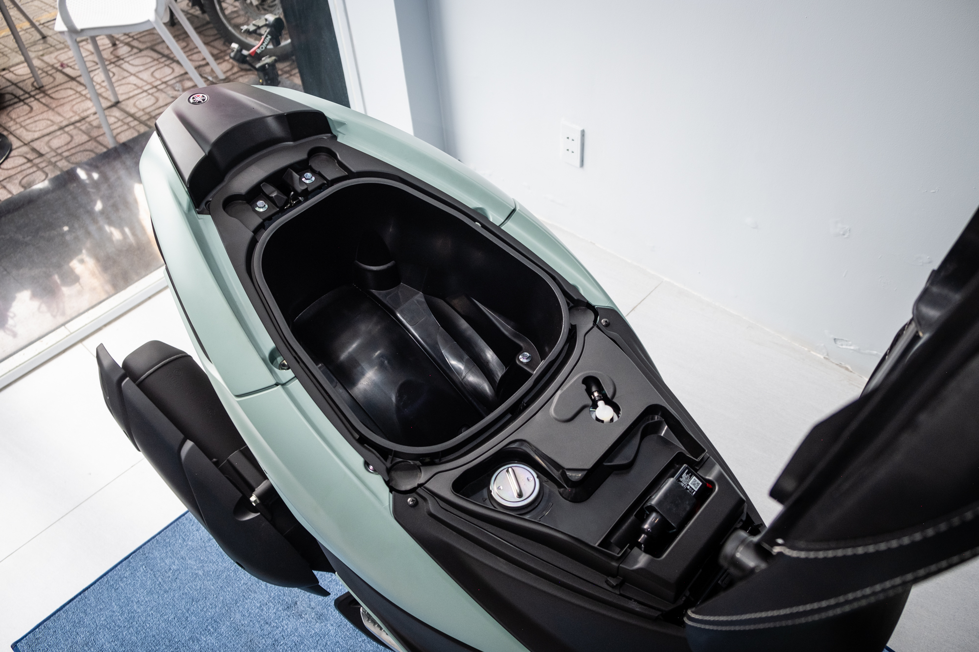 Cốp xe dưới yên có dung tích 23,5 lít, có thể chứa một mũ bảo hiểm, tích hợp đèn LED.