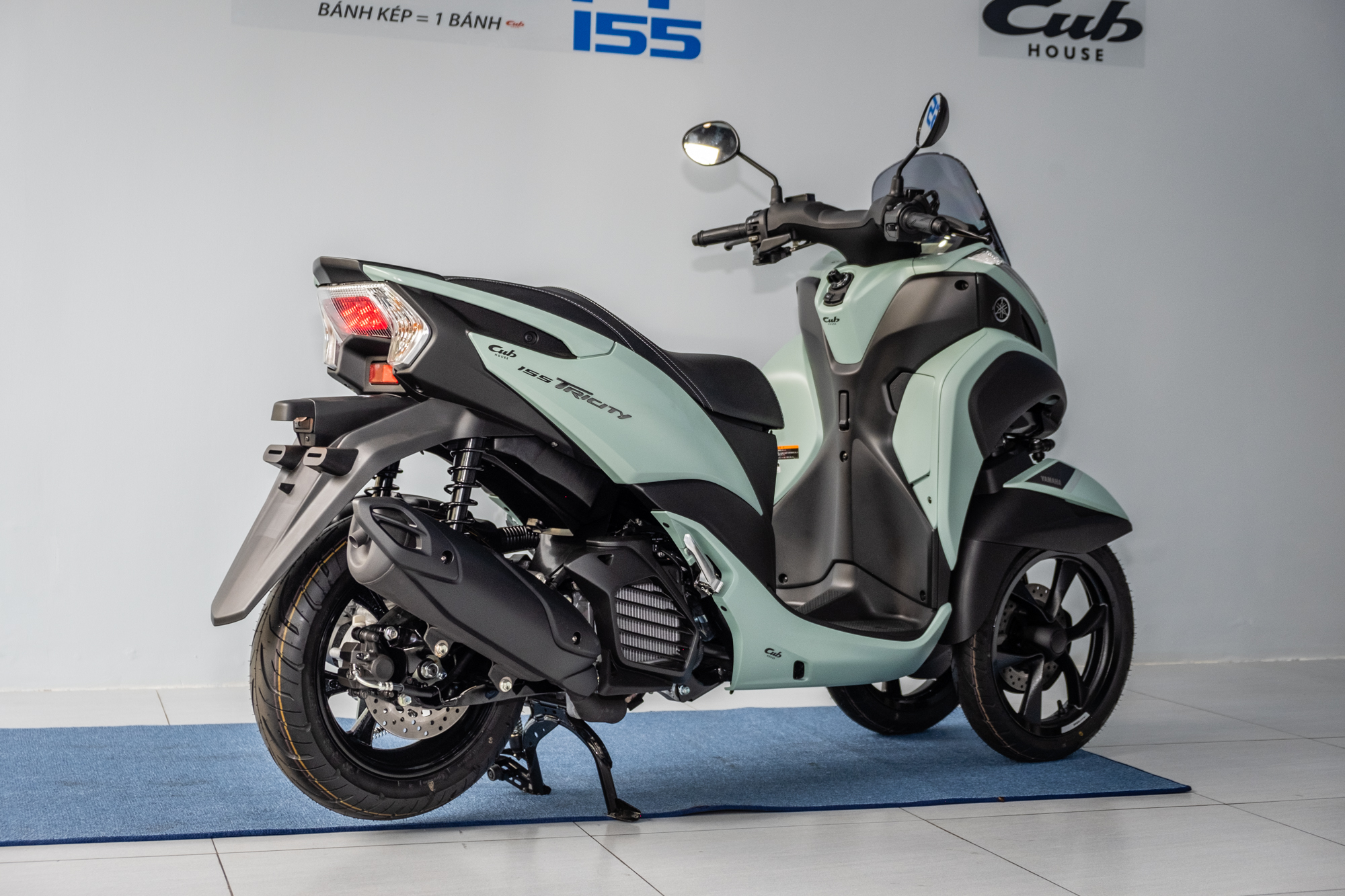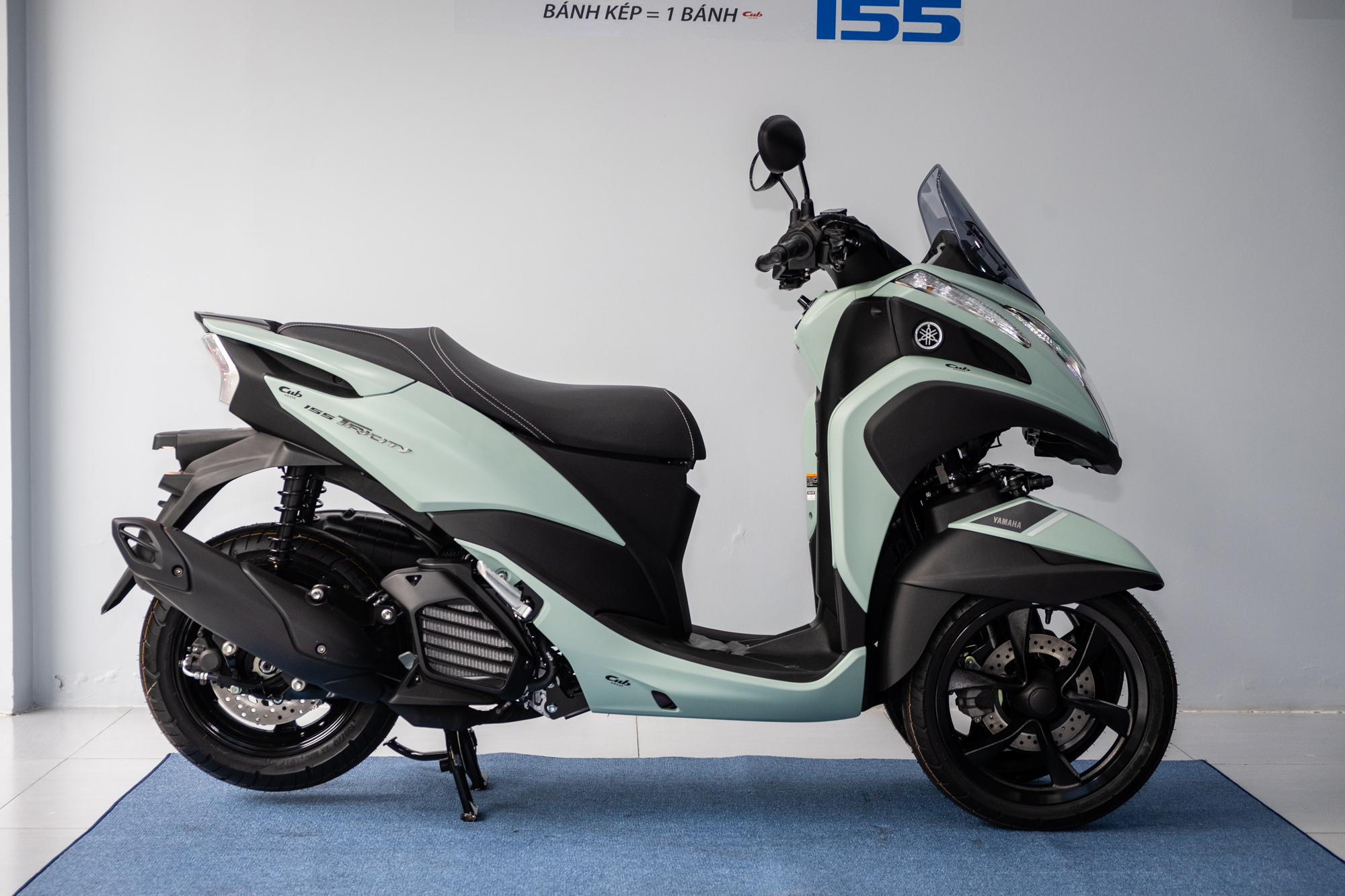 Yamaha Tricity 155 không được gọi là xe 3 bánh tại Việt Nam. Theo quy định, “bánh kép” là hai bánh xe được lắp đồng trục, khoảng cách giữa tâm vết tiếp xúc của hai bánh xe này với mặt đường không lớn hơn 460 mm. Vậy Yamaha Tricity 155 được xem là xe gắn máy 2 bánh thông thường.
