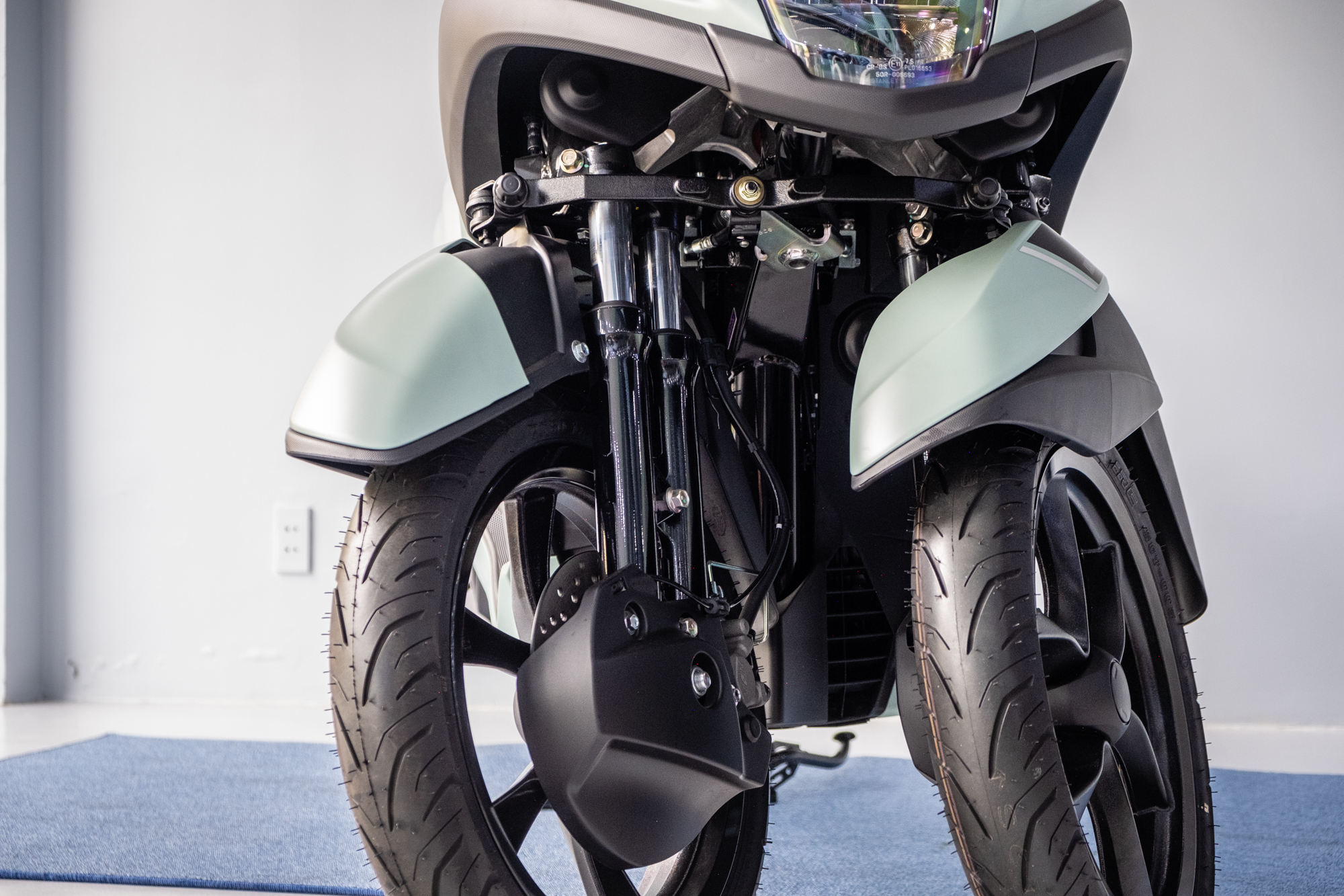 Yamaha Tricity 155 đặc biệt bởi cấu trước bánh kép phía trước, đem lại sự ổn định khi vào cua, tăng tính an toàn, đồng thời tối ưu cảm giác lái thể thao.