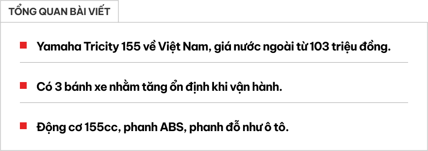 Yamaha Tricity 155 về Việt Nam: Bánh kép phía trước cho người người thích 'độc lạ', giá quy đổi từ 103 triệu đồng